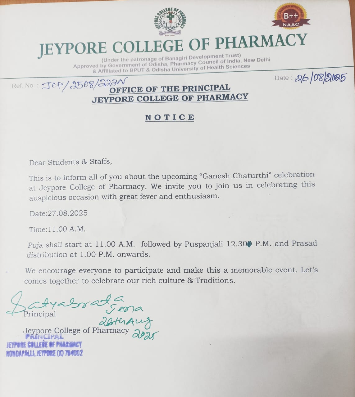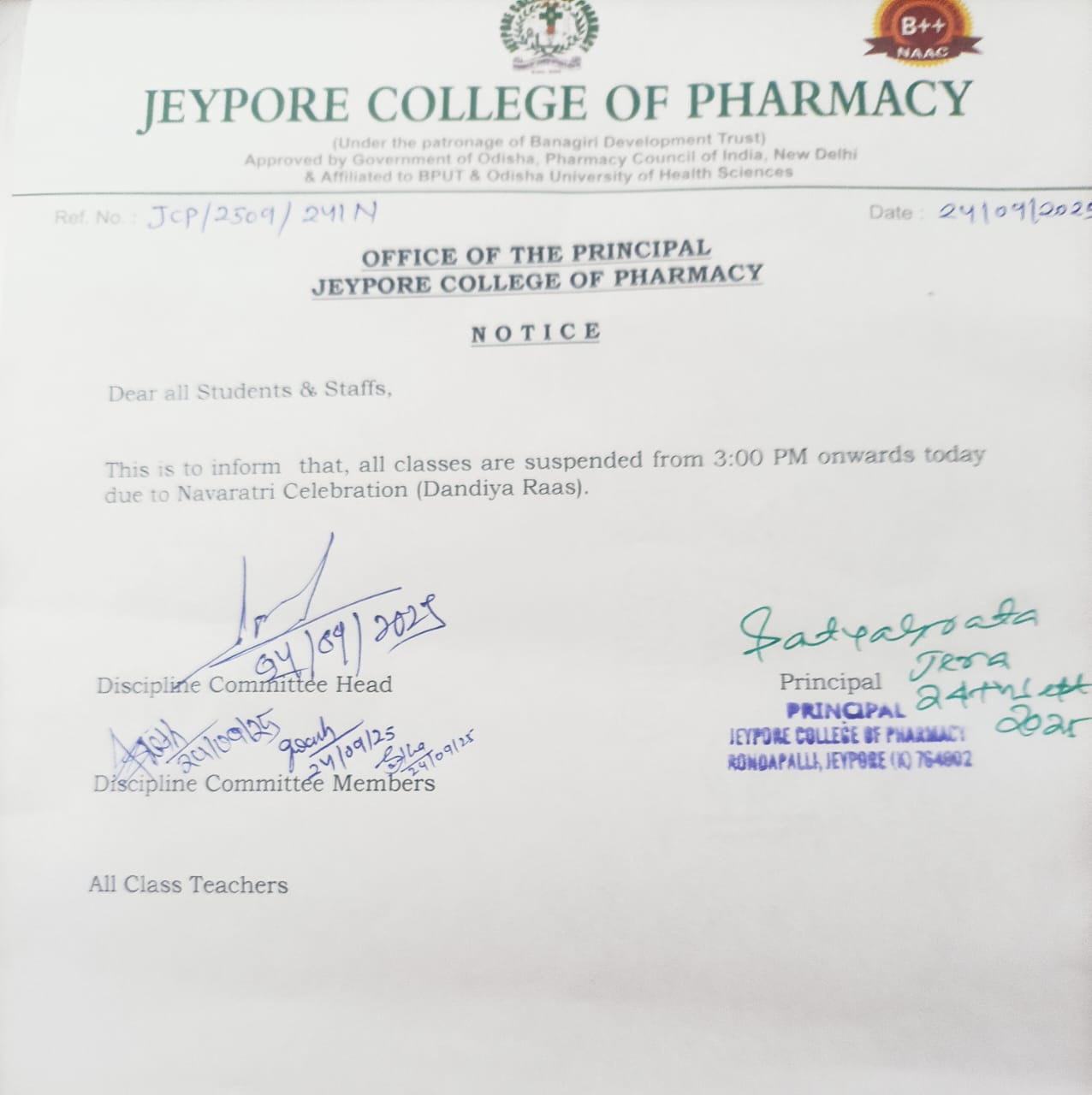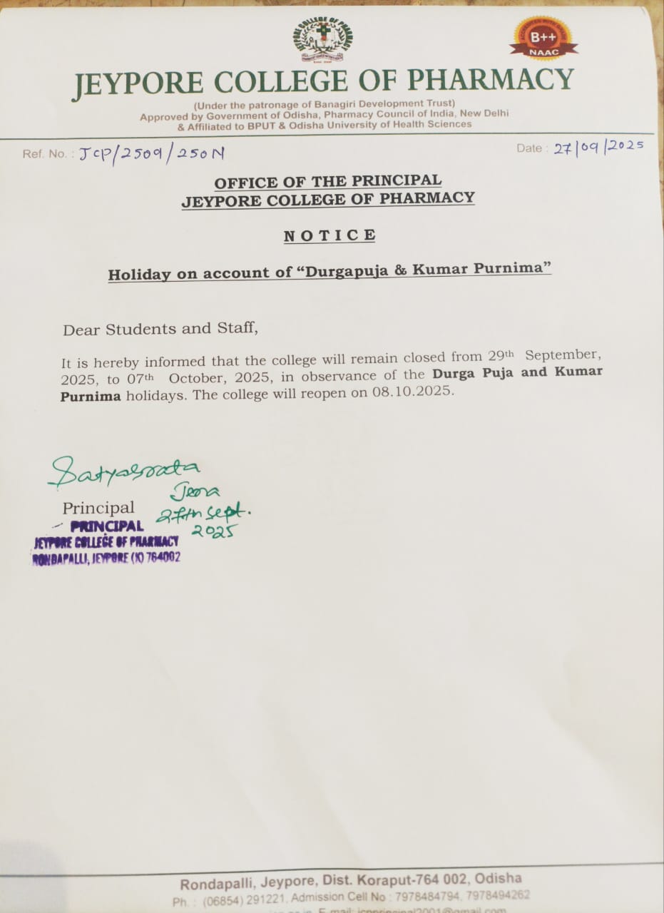 Welcome to the Jeypore College of Pharmacy website. We hope to share with you the passion and enthusiasm of both staff and students, and everything they do here, to make the Jeypore College of Pharmacy a great place to learn. In fact, we are very proud that our students have the best education on our premises. This was achieved by instilling a very high standard of teaching and learning practices and research. The emphasis is on advanced skills to foster positive relationships between all.