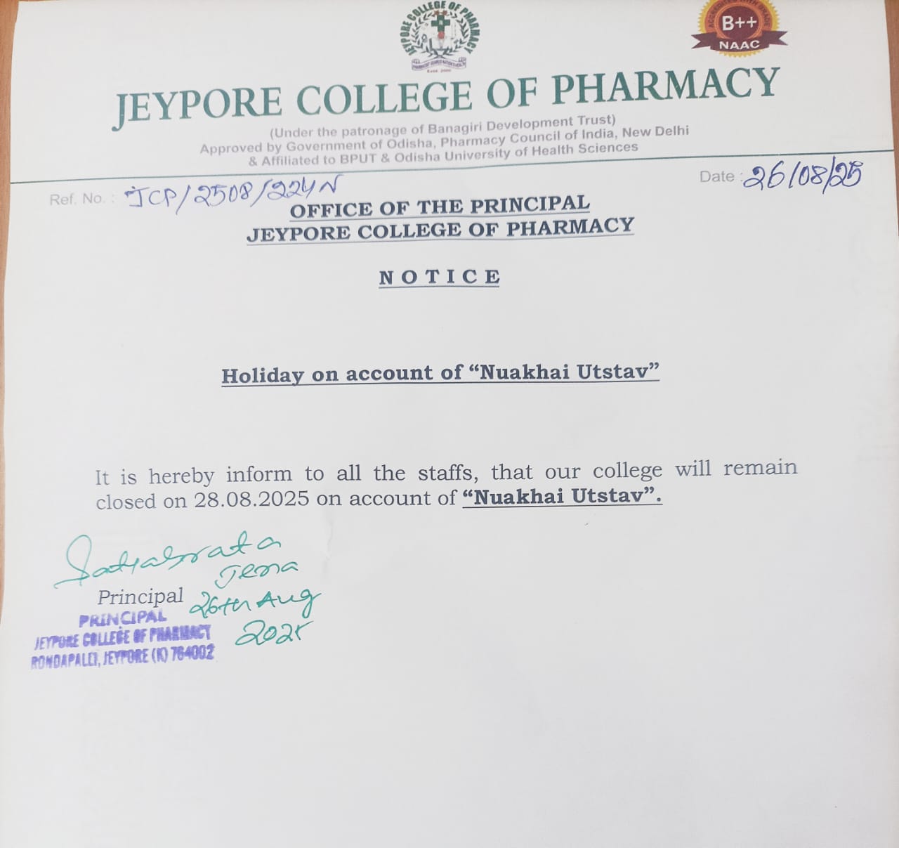 To make Jeypore College of Pharmacy and institute of excellence in the field of health science, which can cater to the needs of local people through preservation and globalization of traditional healing system with the help of Science & Technology & to produce technically skill & professionally competent knowledge workers, capable of meeting the challenges of time to serve the humanity.